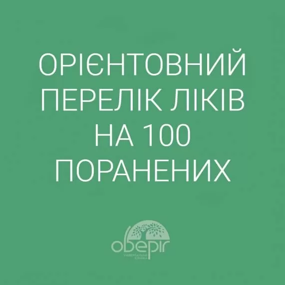 Ось список медикаментів для надання хірургічної допомоги 100 пораненим, складений Міжнародним Червоним Хрестом.