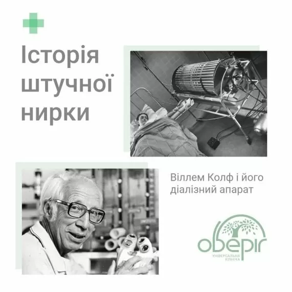 Нідерландський лікар Віллем Колф створив перший діалізний апарат – штучну нирку, використавши оболонки сосисок і мотор швейної машинки. До 1960-х років пацієнти з нирковою недостатністю просто вмирали. Лікарі не могли їм допомогти. Винайдення діалізного апарату не тільки дозволило рятувати життя, але й стало потужним поштовхом для розвитку трансплантології. Адже завдяки діалізу пацієнти могли дочекатися пересадки нирки.