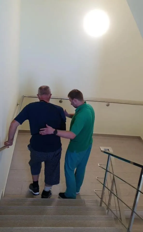 У пацієнта спостерігалося добре неврологічне та функціональне відновлення, і через 2 тижні після операції він вже тренувався долати сходи та ходив надворі з невеликою допомогою фізичного терапевта (рис. 12).