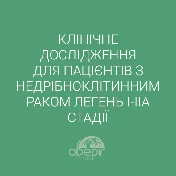 Клиника «Оберіг» принимает участие в международном клиническом исследовании, которое предусматривает, что пациенты с немелкоклеточным раком легких I-IIА стадии могут получить бесплатное обследование и лечение в нашей клинике в рамках исследования эффективности стереотактической лучевой терапии + препарата "Пембролизумаб".