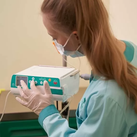 В клинике «Оберіг» инфузионные порты используются, в частности, если планируется длительная химиотерапия с использованием помп (это специальные капсулы с химиотерапевтическим препаратом, поступающим в вену в течение определенного количества часов, например, 46 часов). Сейчас из десяти пациентов клиники «Оберіг», которые проходят курсы химиотерапии, порты стоят у семи – тех, кому это рекомендовано врачом-химиотерапевтом и эндоваскулярным хирургом.